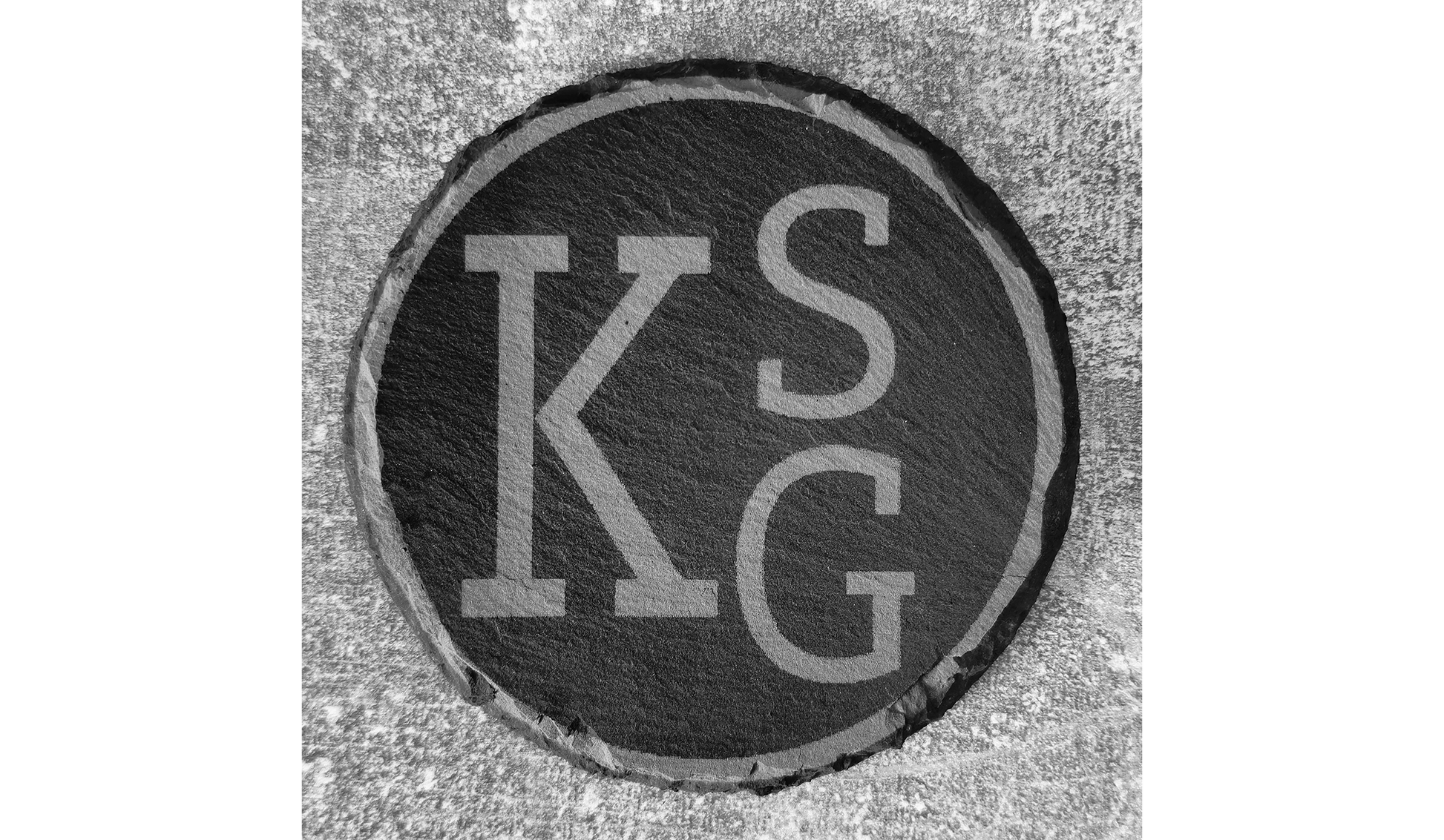 Glas-Untersetzer aus Schiefer mit Moosgummi Füßen und Persönlicher Gravur.
